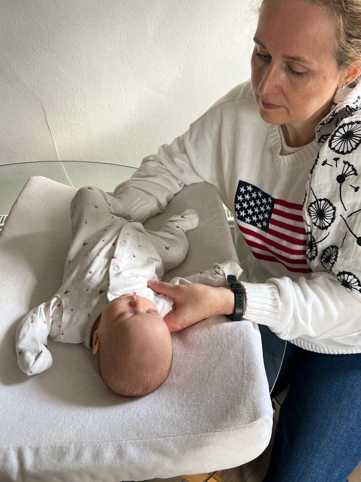 During your first visit, I will take a case history to understand why you have brought your baby and create a comfortable and safe space for you both. You may wish to cuddle your baby, breast or bottle feed or lie your baby comfortably on the couch or floor.